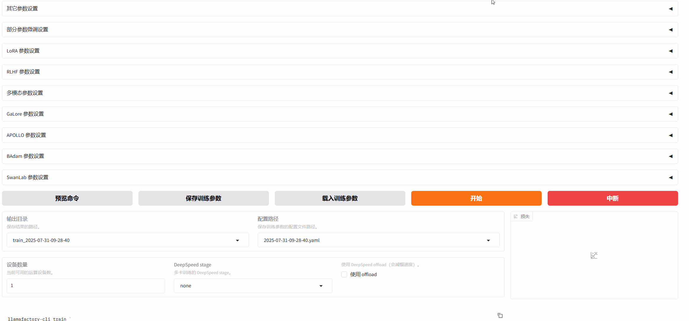 有两种训练方式,一种是在llama-factory页面上点击开始: